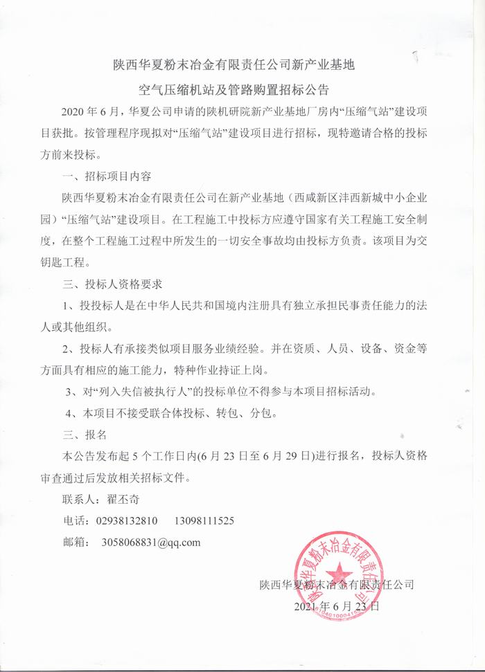 空氣壓縮機(jī)站及管路購(gòu)置招標(biāo)公告