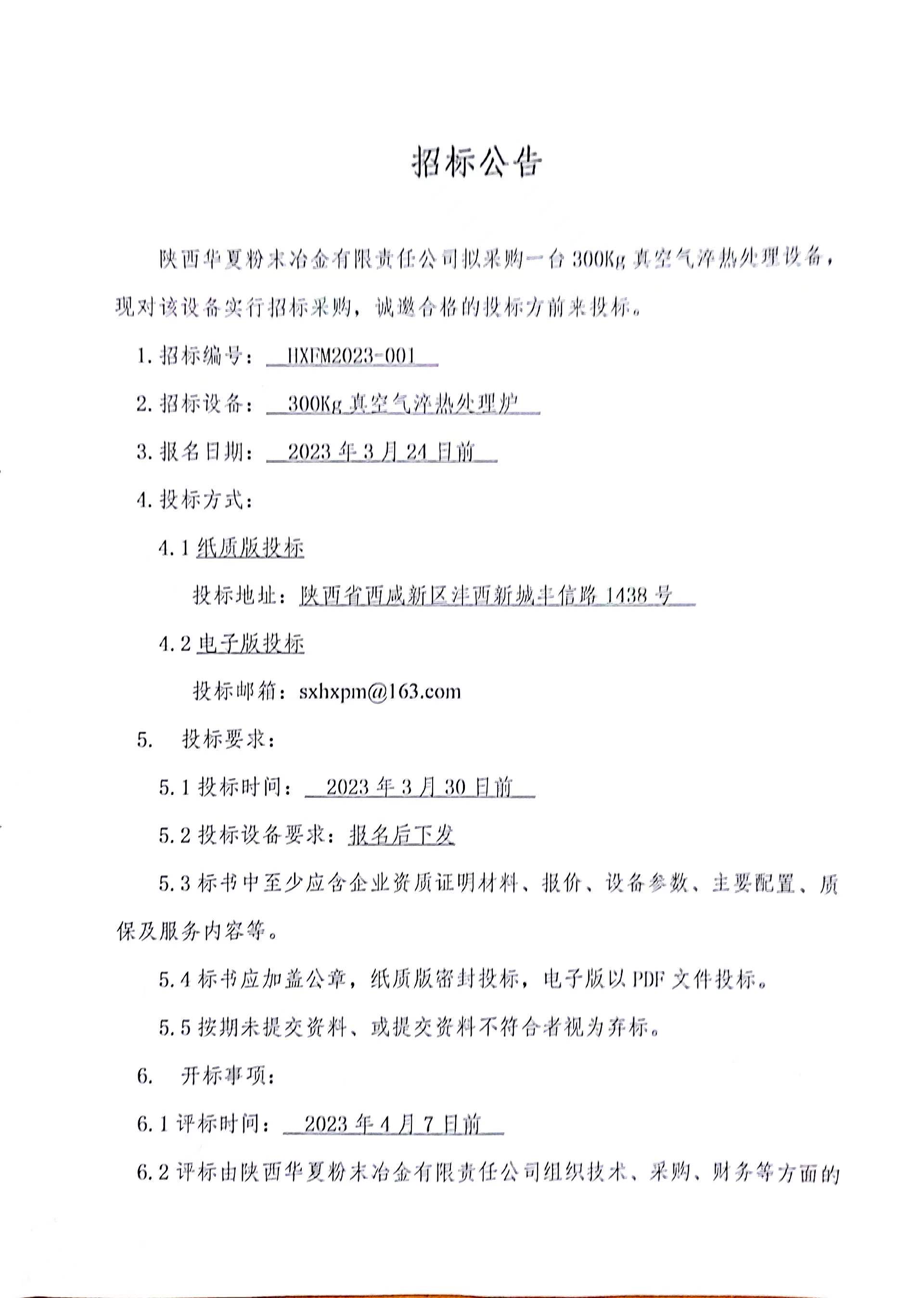 陜西華夏粉末冶金有限責(zé)任公司廢舊設(shè)備處置公告
