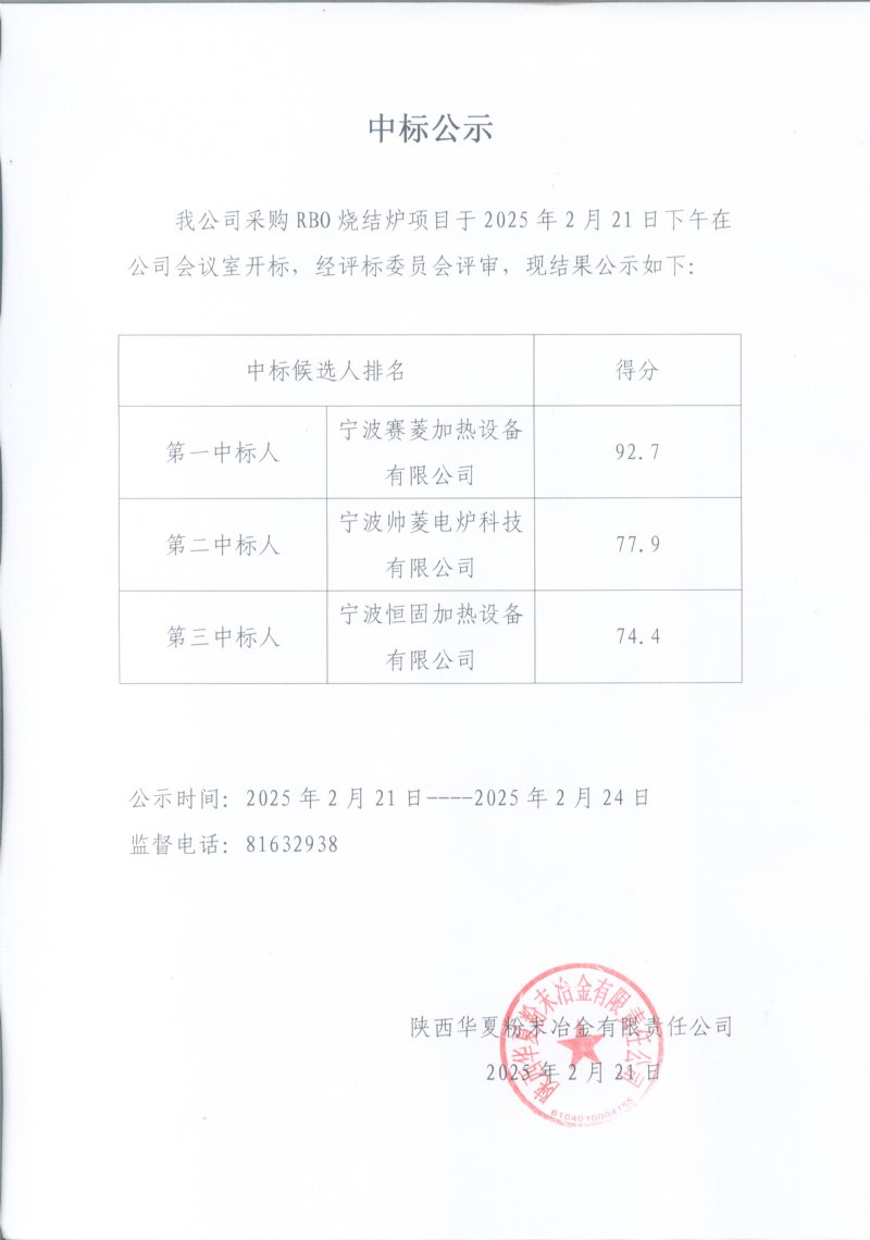 中標(biāo)公示